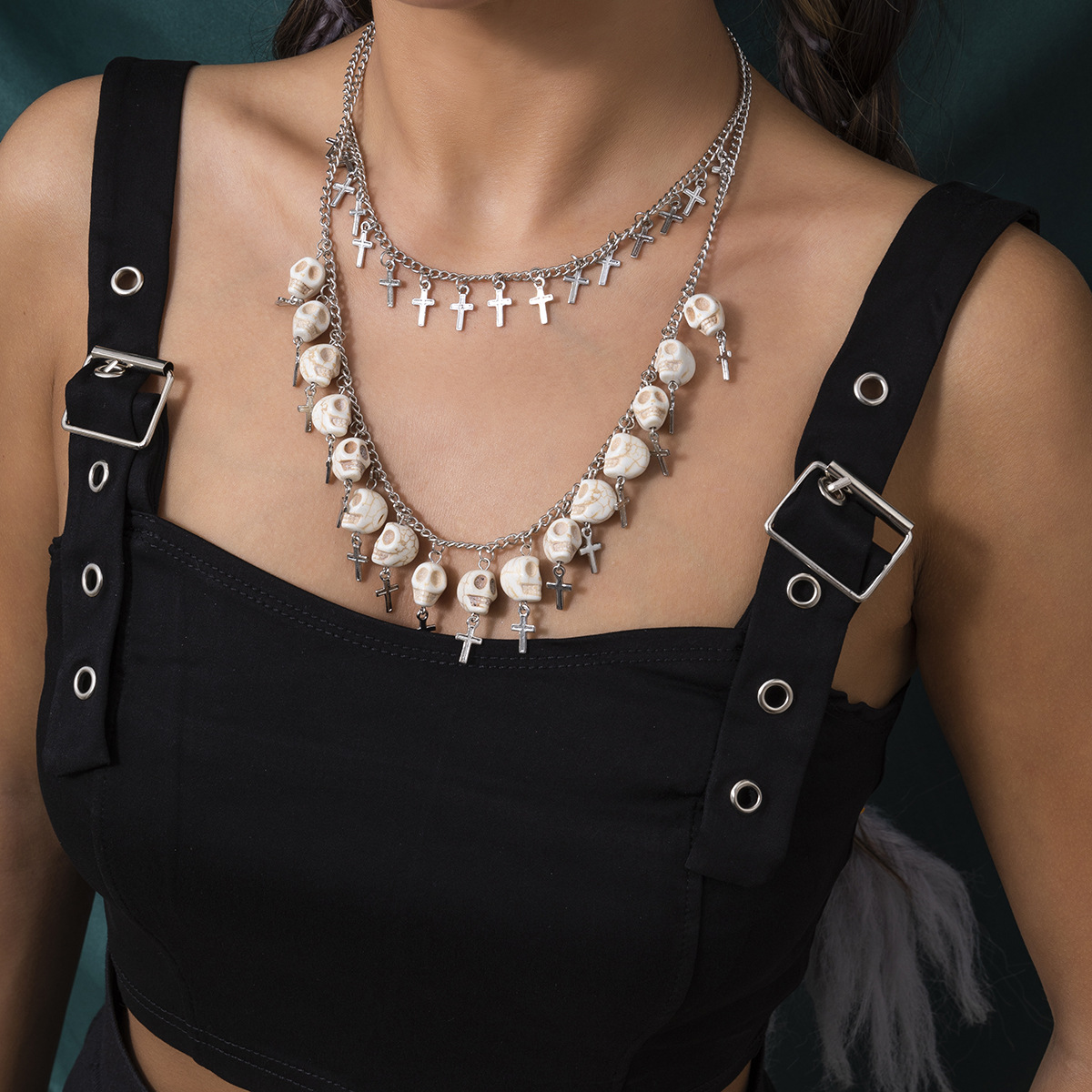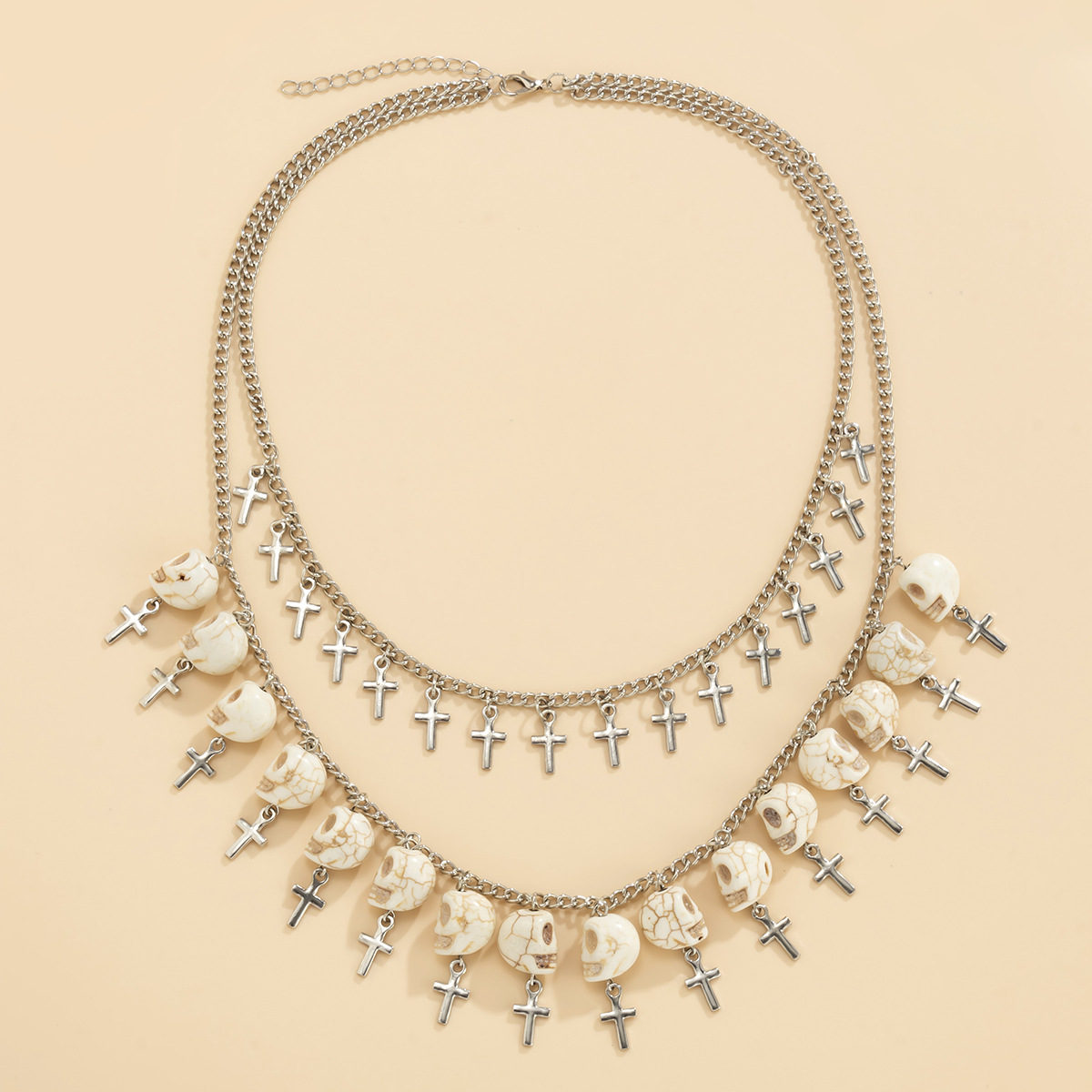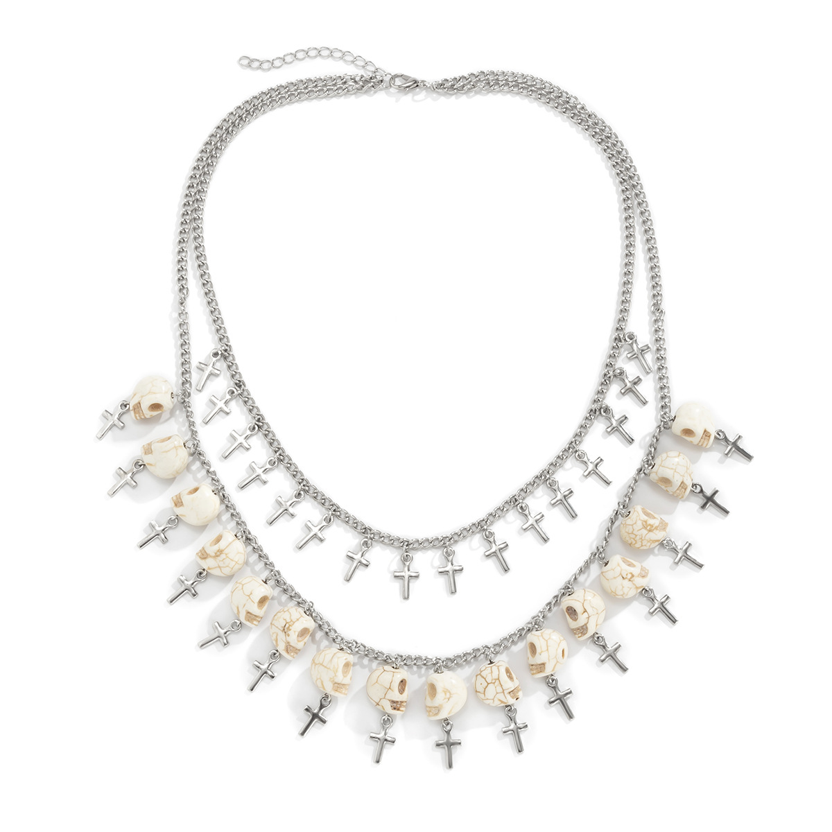 Layered Acrylic Skull Necklaceiron chain + alloy + acrylic