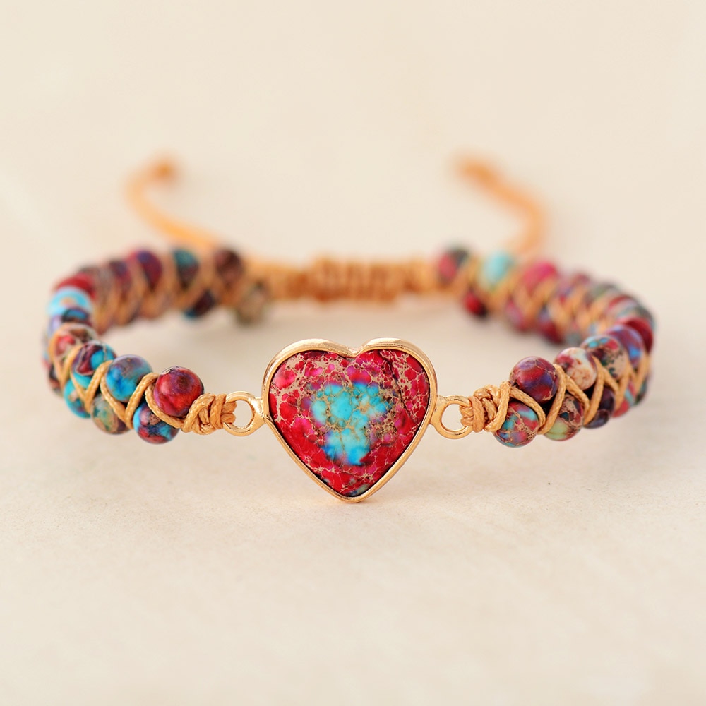 Natural Stone Jasper Heart Charm String Braided Macrame Bracelets