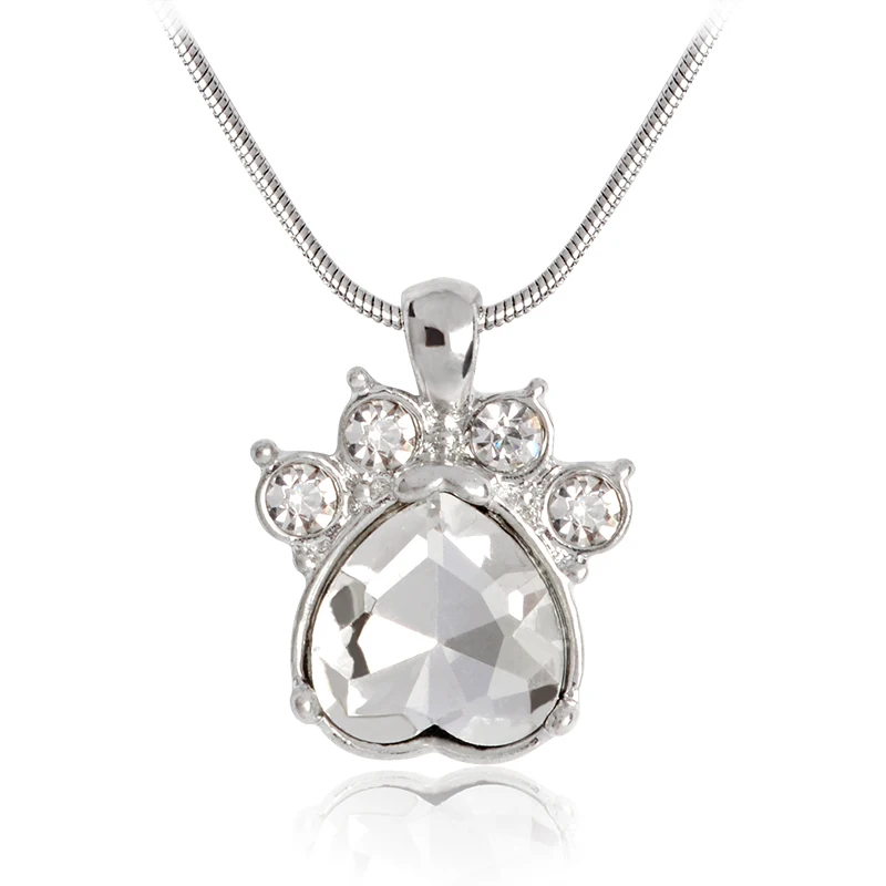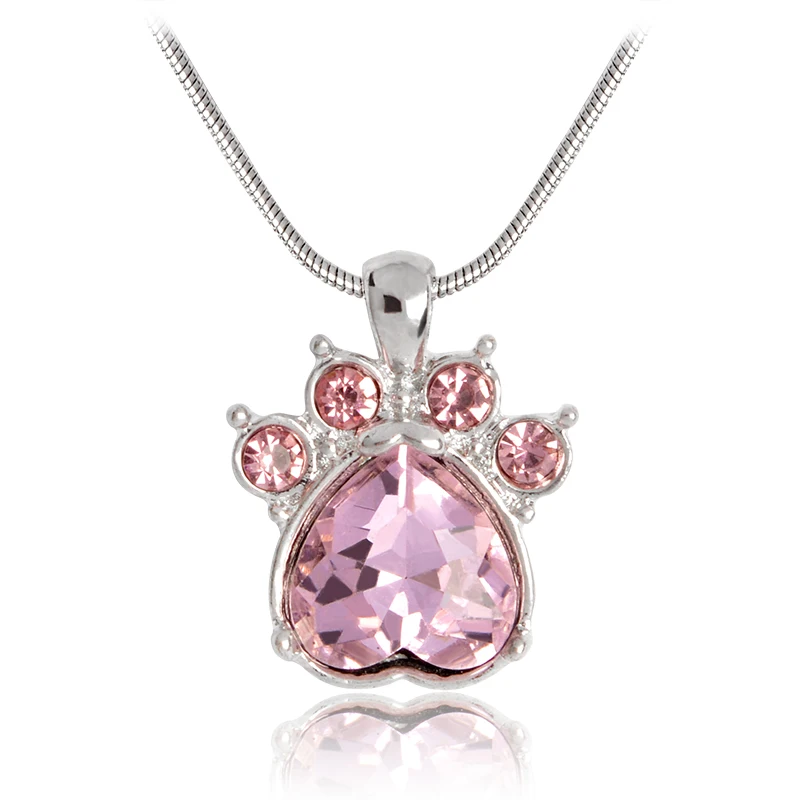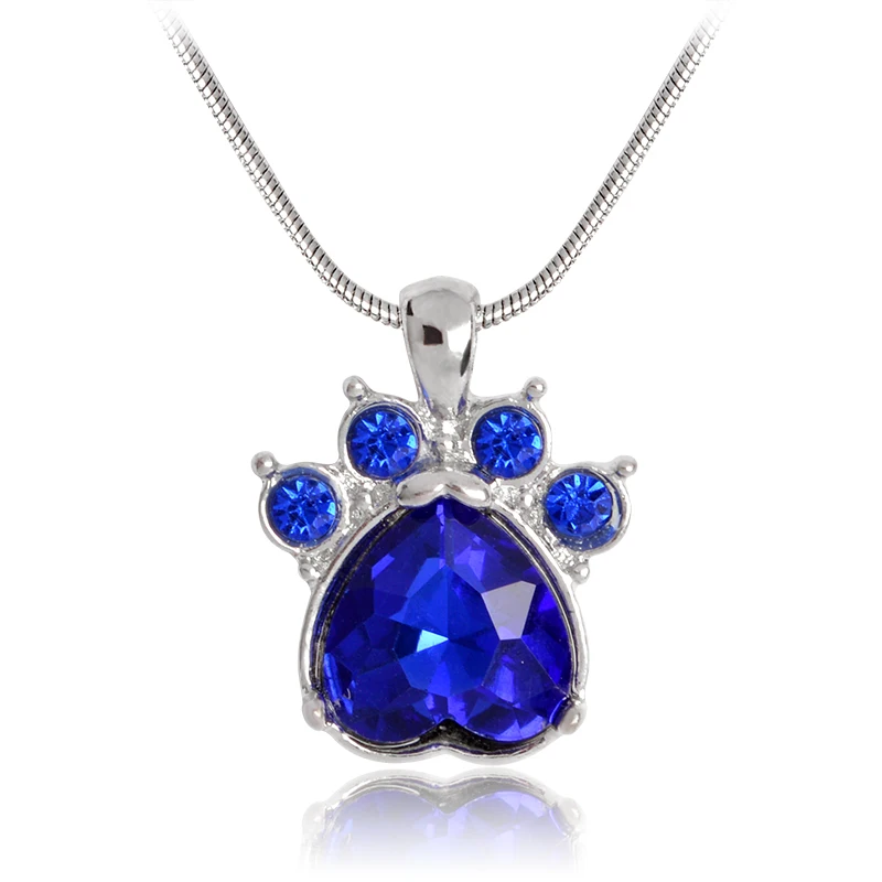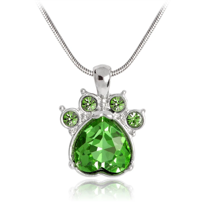 Rhinestone Paw Charm Birthstone NecklacePendant size:1.8 x 2.4cmWeight: 9g