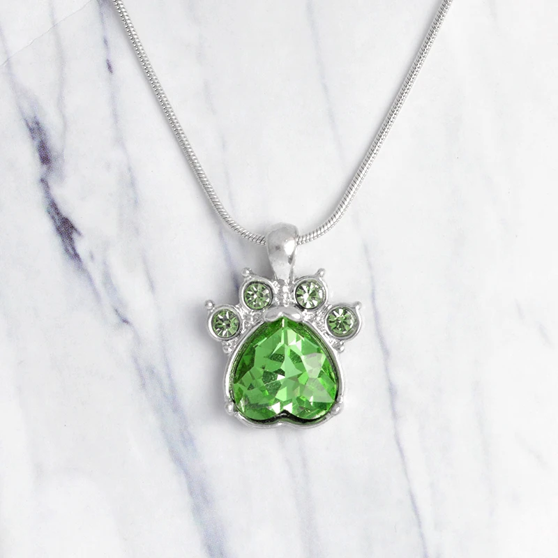 Rhinestone Paw Charm Birthstone Necklace